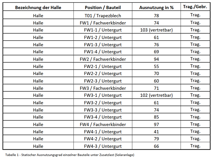 Nach rechnerischer Nachmodellierung (Reverse-Engineering) konnten die PV-Zusatzlast als statisch unbedenklich bewertet werden (wie im Erstcheck bereits prognostiziert).